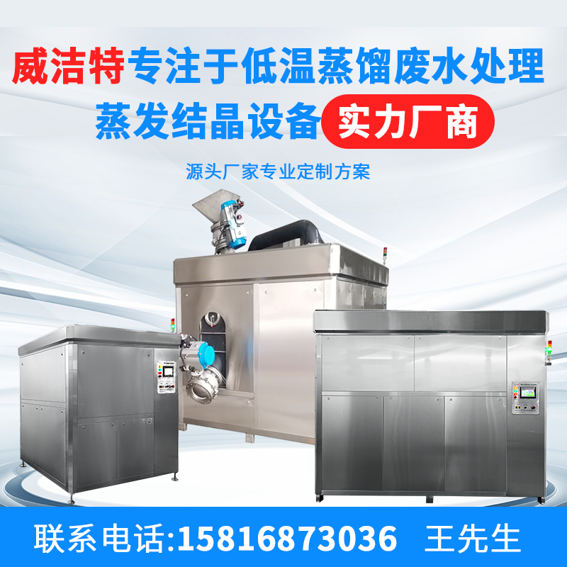 高溫蒸發會導致冷凝水中含有大量的鹽類物質,腐蝕產物和各種微生物,運行一段時間后整個系統內會結有大量的鈣鎂碳酸鹽垢及藻類,微生物淤泥等,蒸餾出水水質較差,真空低溫蒸發技術可避免某些敏感性物質在高溫下產生的不良副反應,整個蒸發過程不會產生結晶、結垢現象,濃縮率達75%~95%,蒸餾出水可回用。